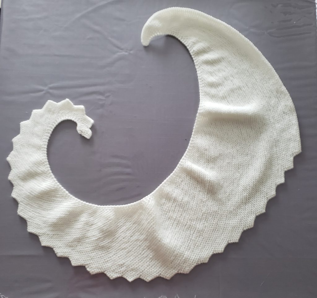 19ème rang, 1 maille endroit, 2 mailles dans les deux suivantes et les mailles restant à l’endroit = 16